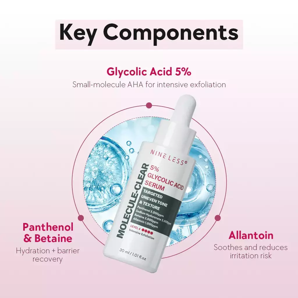 Aqua(Water), Glycolic Acid, Butylene Glycol, Dipropylene Glycol, Propanediol, Sodium Hydroxide, 1,2-Hexanediol, Hydroxyethylcellulose, Panthenol, Sodium Hyaluronate, Betaine, Allantoin, Ethylhexylglycerin, Disodium EDTA, Sodium Nitrate, Glyoxal, Citric Acid.